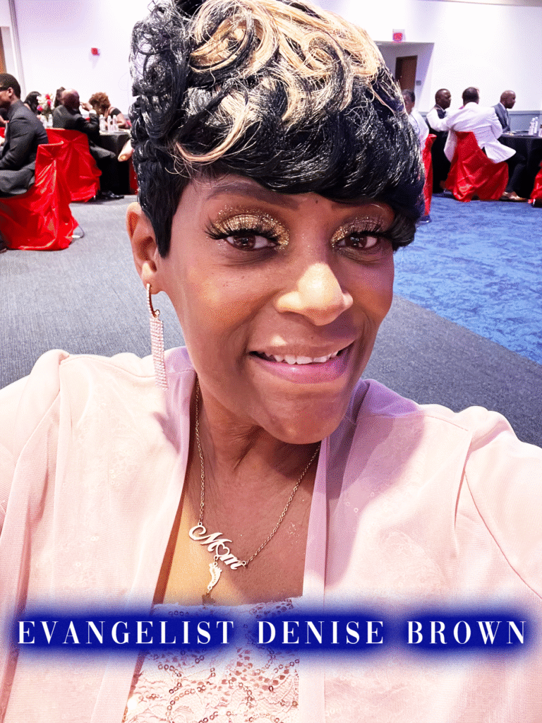 I am Evangelist Denise Brown, a native of Cincinnati, Ohio. In 1983, I relocated to Atlanta, Georgia with my late Mother (Mother Frances Brown). From a very young age, I was introduced to gospel music and deeply inspired by legendary voices such as Rev. James Cleveland, the Hawkins Family, and the Mississippi Mass Choir music that helped shape my love for worship and praise.
