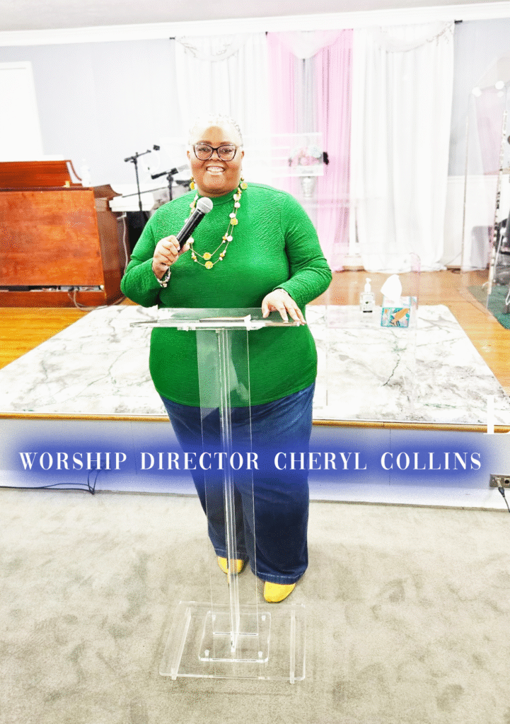 I am Worship Director Cheryl Collins, a servant of God whose life has been rooted in ministry from birth. I come from a strong spiritual foundation, having been raised in a family where service to God was a way of life. My late father faithfully served as Head Deacon, and my late mother ministered in various areas of the church until her passing. Through their legacy, I learned early that serving God is woven into my blood and bones.